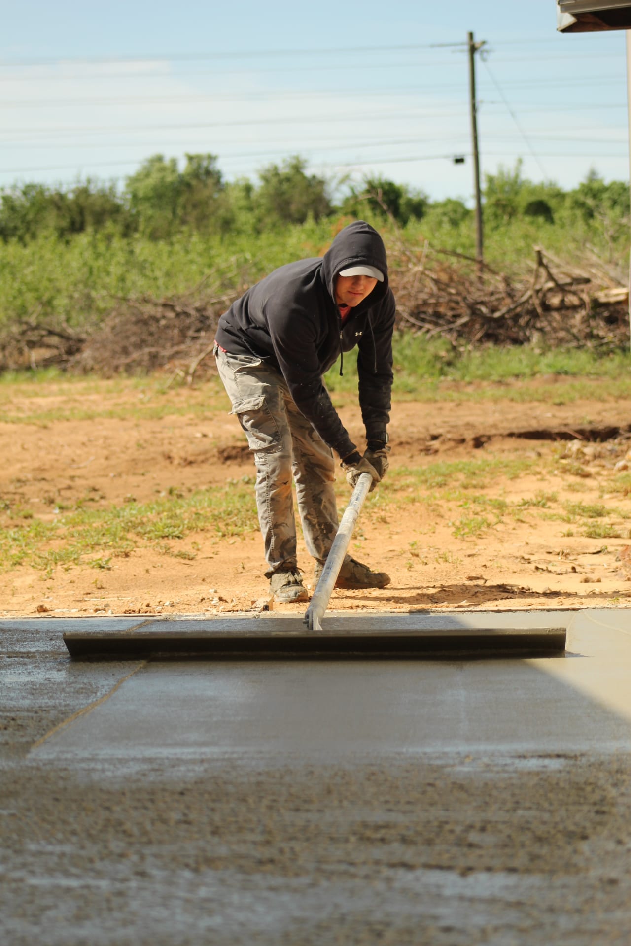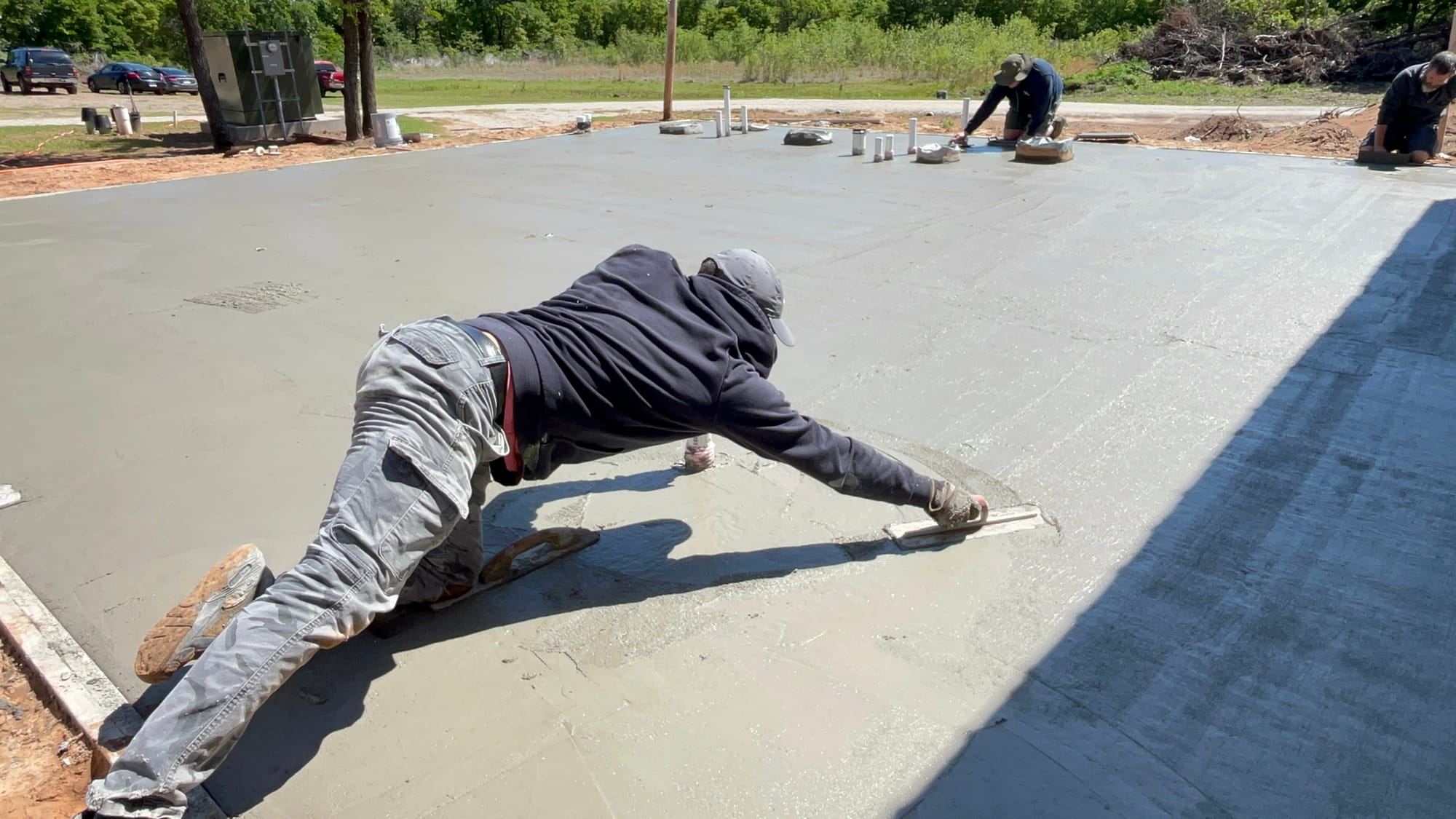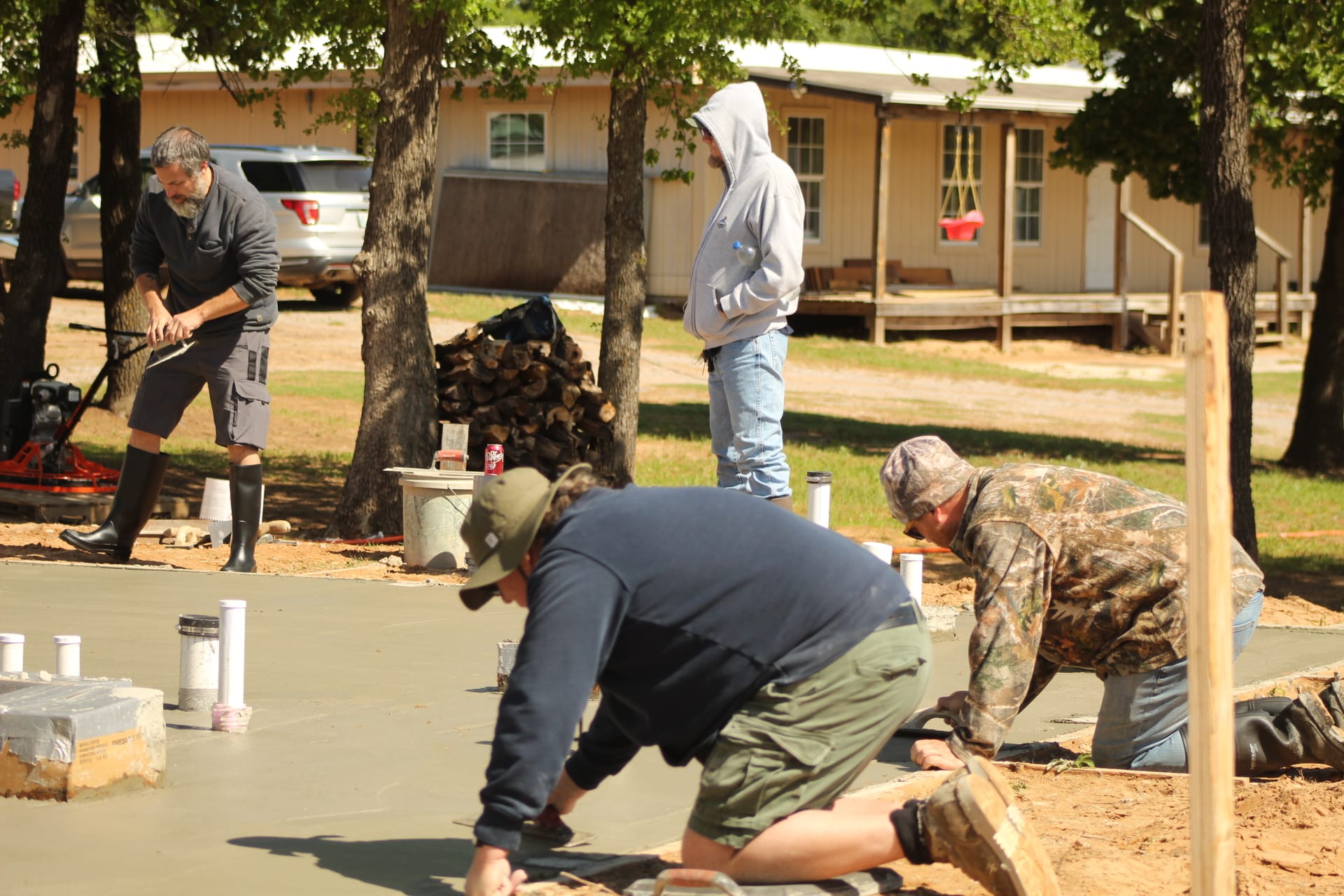On a stretch of land at 11889 Albright, where law enforcement once shut down an illegal marijuana grow operation, a different kind of work is now underway. On Saturday, volunteers gathered at Living Waters Church to pour a concrete slab that will expand the church’s current meeting space, marking a visible step forward in a broader effort to transform the five-acre property. Roughly 20 people showed up to help with the project, assisting with everything from pouring and smoothing concrete to preparing food and providing childcare for workers, while a concrete expert, Steve Pollard, from Immanuel Baptist in Shawnee helped guide the pour. For church leaders, the day represented more than construction progress.