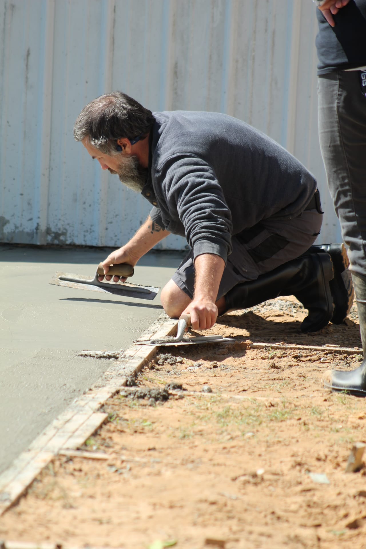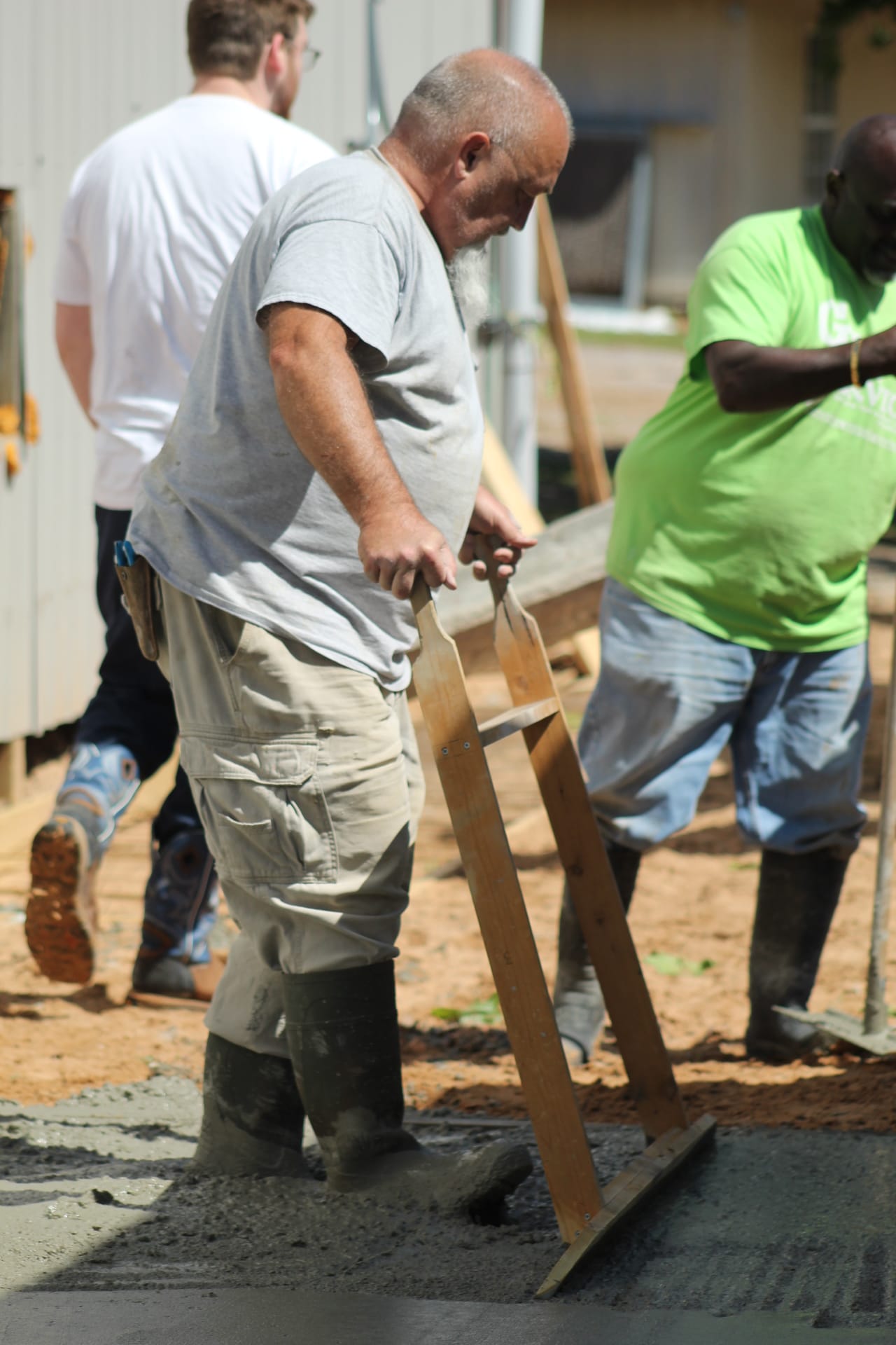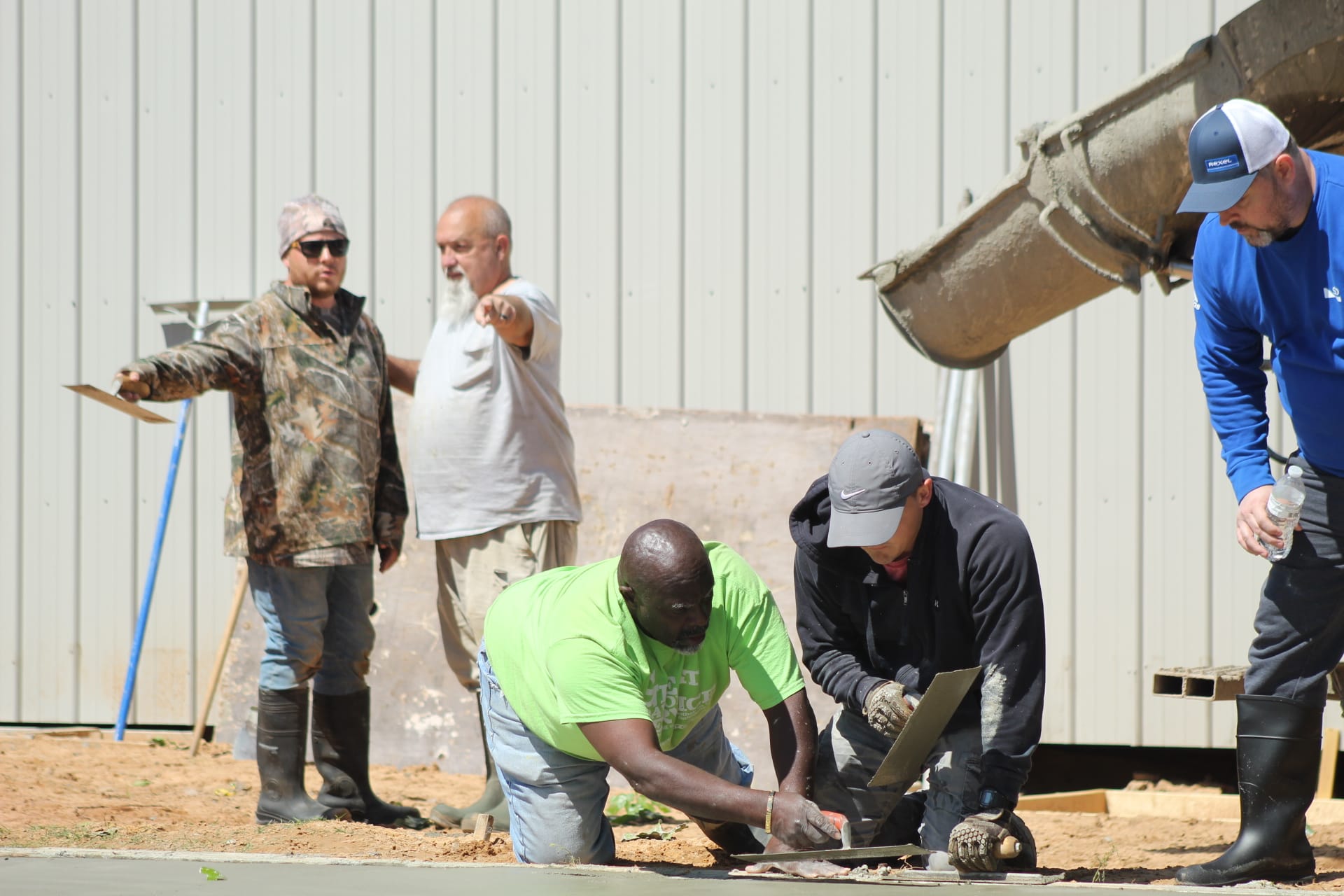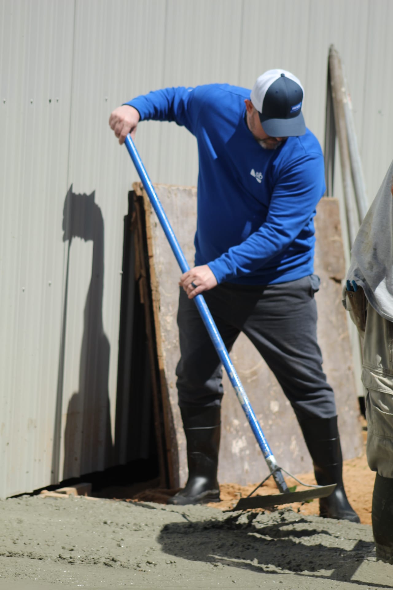 On a stretch of land at 11889 Albright, where law enforcement once shut down an illegal marijuana grow operation, a different kind of work is now underway. On Saturday, volunteers gathered at Living Waters Church to pour a concrete slab that will expand the church’s current meeting space, marking a visible step forward in a broader effort to transform the five-acre property. Roughly 20 people showed up to help with the project, assisting with everything from pouring and smoothing concrete to preparing food and providing childcare for workers, while a concrete expert, Steve Pollard, from Immanuel Baptist in Shawnee helped guide the pour. For church leaders, the day represented more than construction progress.